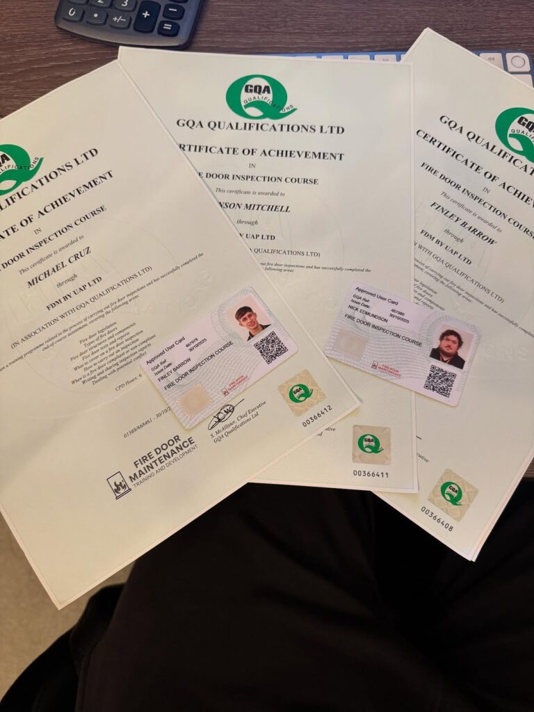 We’re proud to announce an exciting milestone for Barrow Joinery Construction — our entire team has officially completed the Fire Door Inspection Course, certified by GQA Qualifications Ltd in partnership with Fire Door Maintenance (FDM) and UAP Ltd.